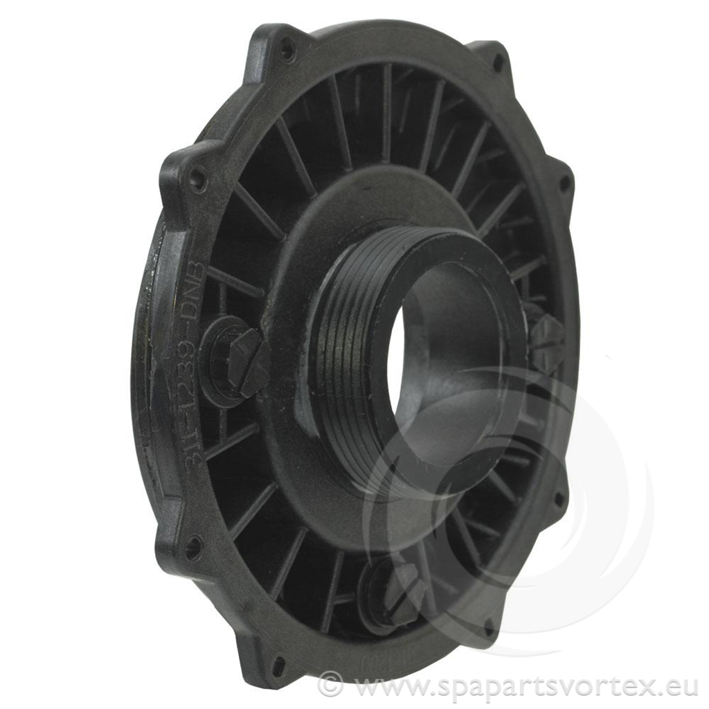 Connections: 2 inch Waterway union. Suction intake is a flat smooth connection meaning that the o'ring would be attached to the union sleeve. Usually 8 small screws from your existing pump wet end would be used to secure this in place.