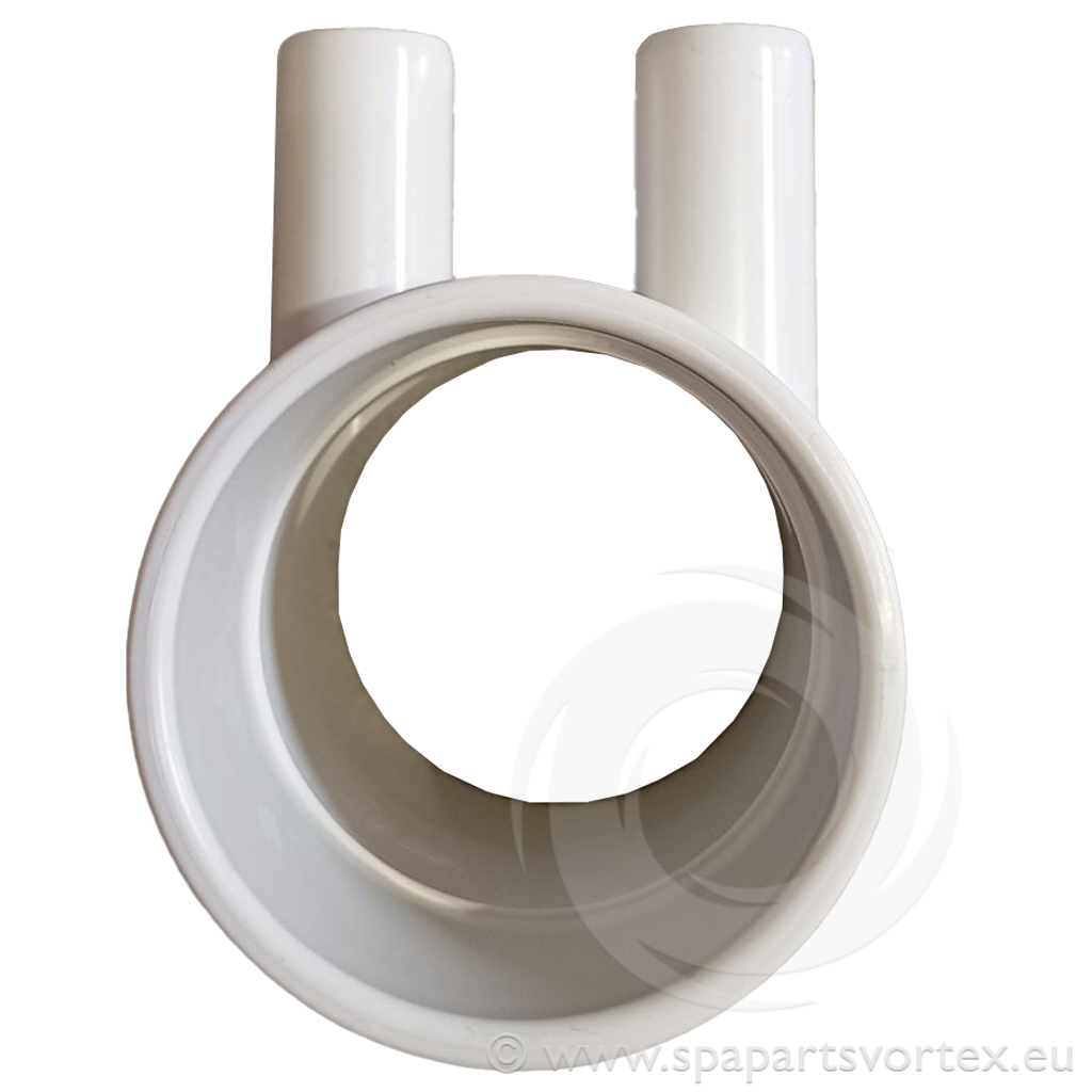Water Manifold 2 Port - Manufactured by Las Water - 2 inch S x 2" S x 3/4 inch Barb Smooth Barb (2) - Internal Diameter: 80 mm Outer Length: 80 mm Depth: 88mm